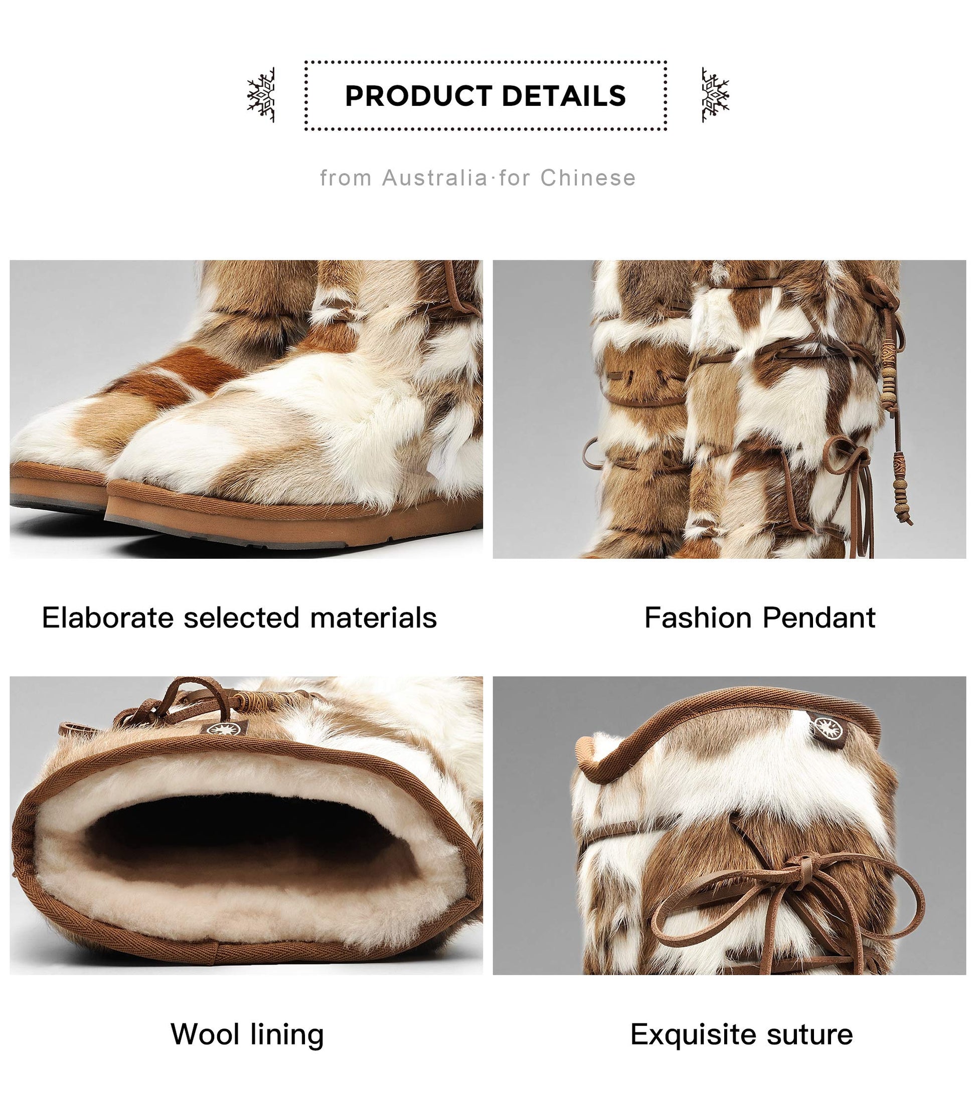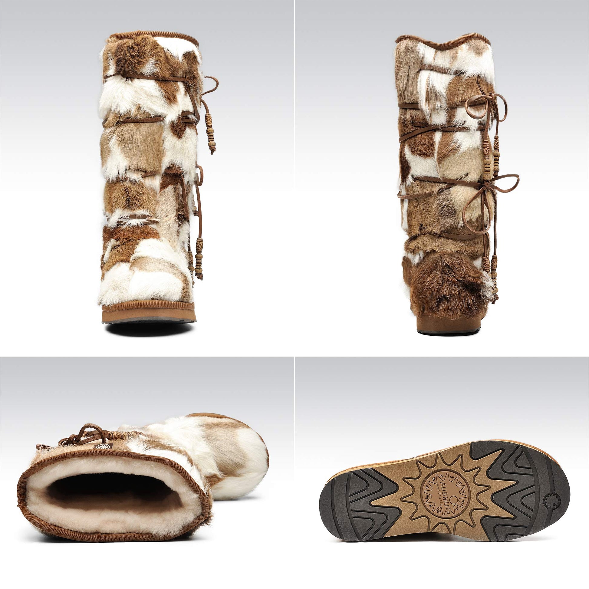 AUMU Womens Comfort Suede Fur Mid- Calf Winter Boots Chestnut