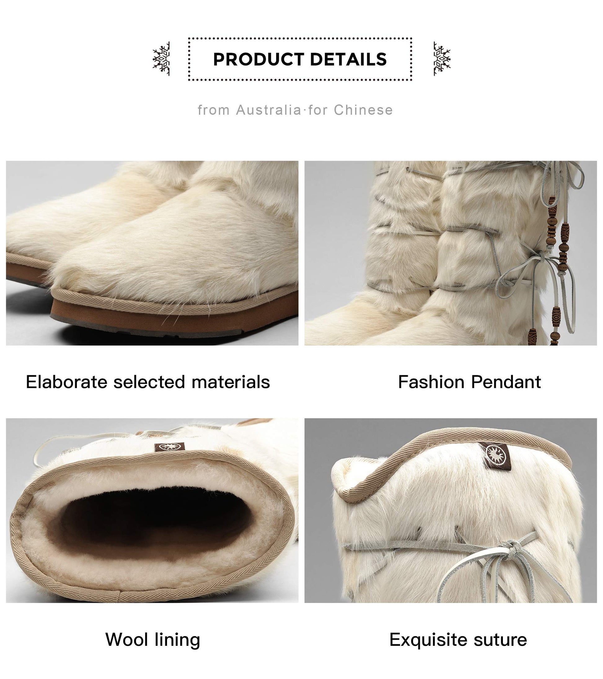 AUMU Womens Comfort Suede Fur Mid-calf Winter Boots White