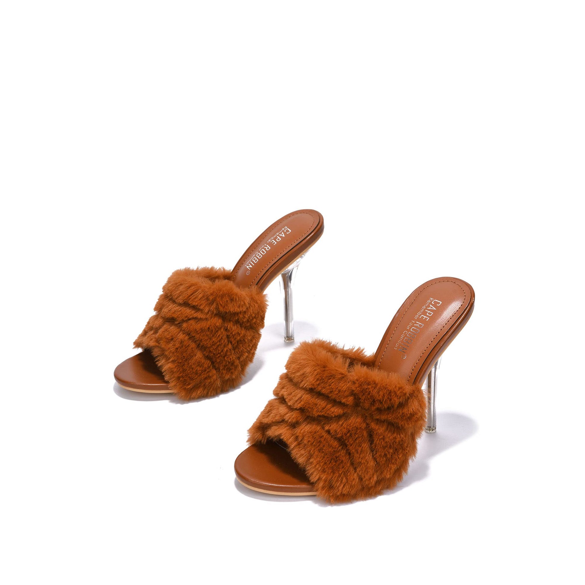 Cape Robbin Obrey Women Faux Fur Open Toe Stiletto Mule Heel Sandal (Tan, numeric_7)