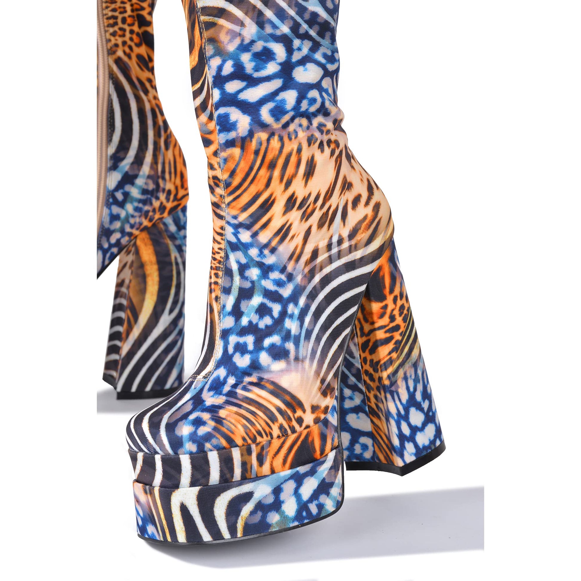 Cape Robbin Prisma Mid Calf Platform Boots, Square Toe Knee High Chunky Block Heel, Fashion Dress Boots for Women - Animal Print Size 9