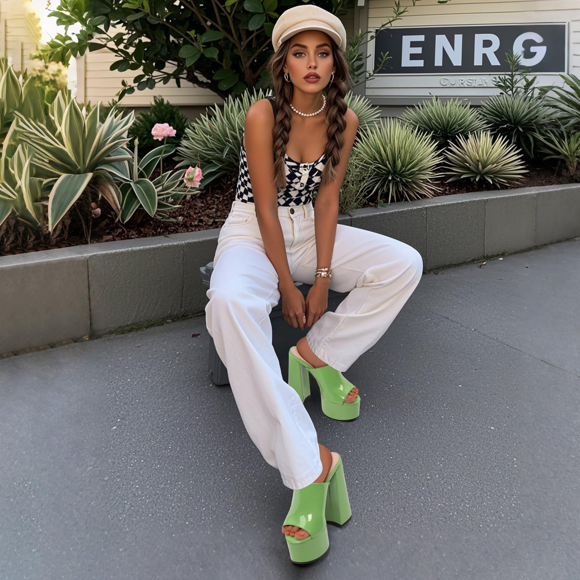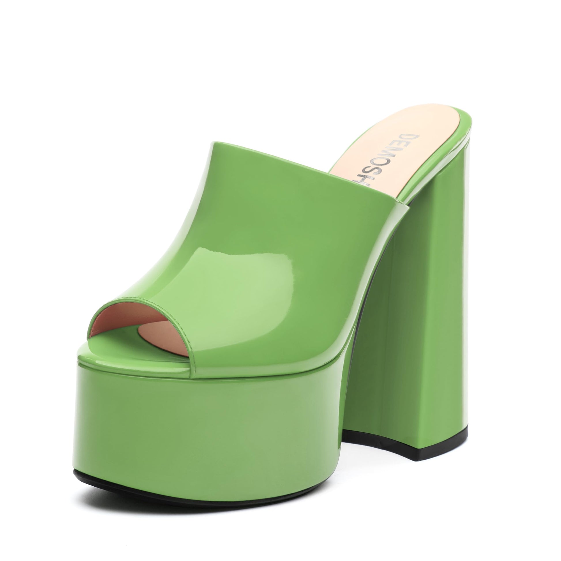 DEMOSHINE Grass Green Women's 6 Inch Platform Heels Slip On Mules Sandals Open Peep Toe Sexy Chunky High Block Heels for Club Party Dressy Shoes Size 9