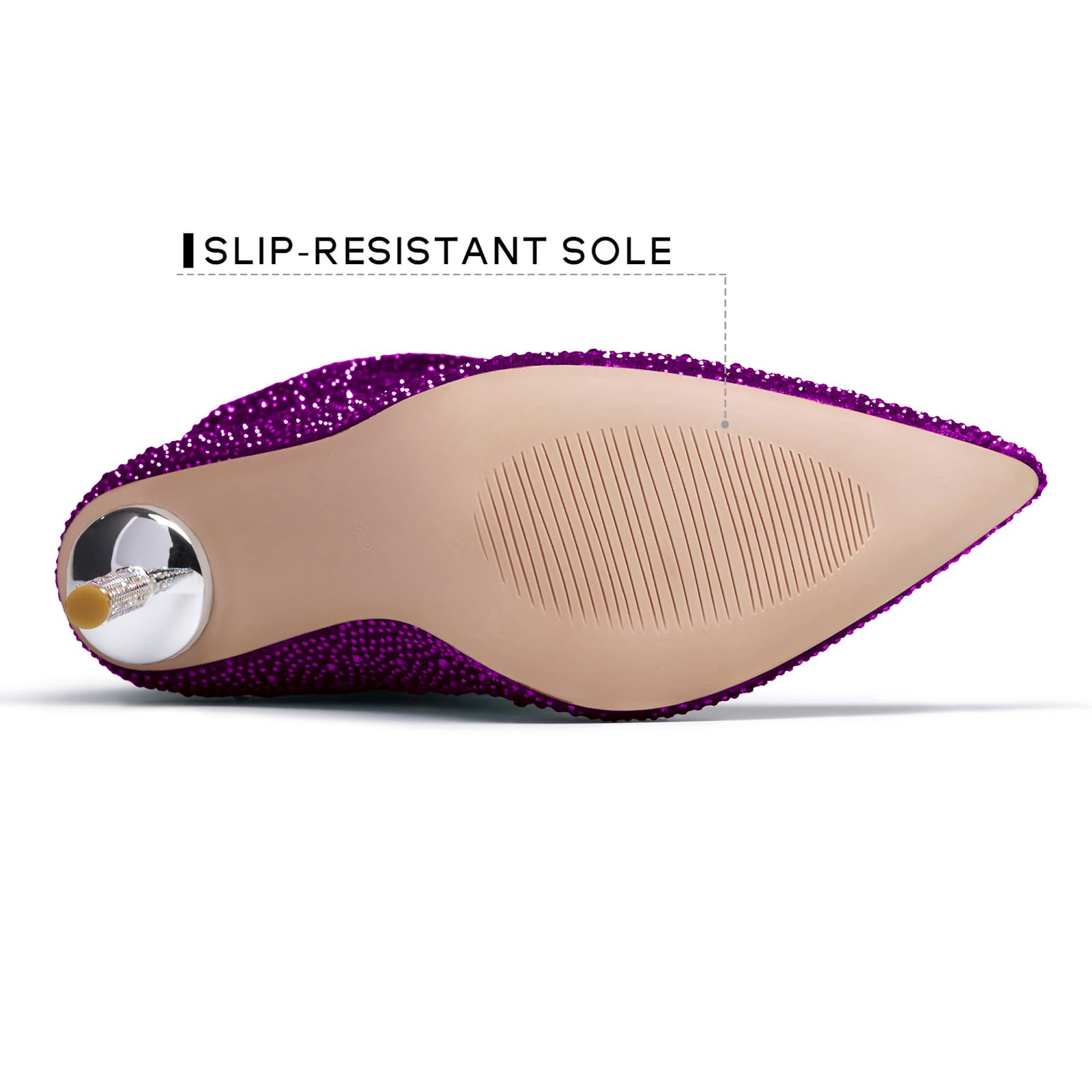 driceic Women's Purple Mid Calf Boots sparkly Rhinestone Stiletto Heel Boots Western Wide Calf Short Cowboy Boots Sexy Pointed Toe dress Party Boots
