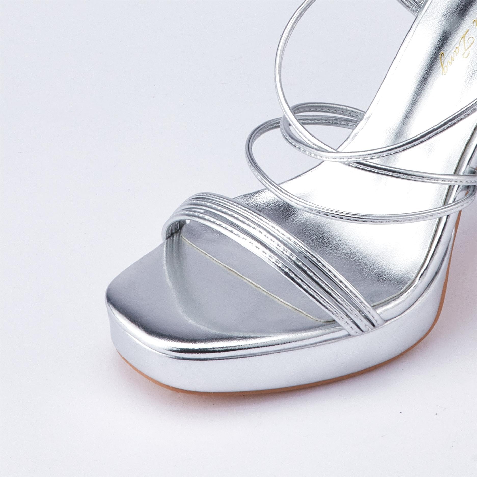 Elisabet Tang Women's Strappy Heeled Sandals, 5 inch Platform Heels Sandals Chunky Lace up High Heels Open Toe Party Heels Shoes Silver Size 11
