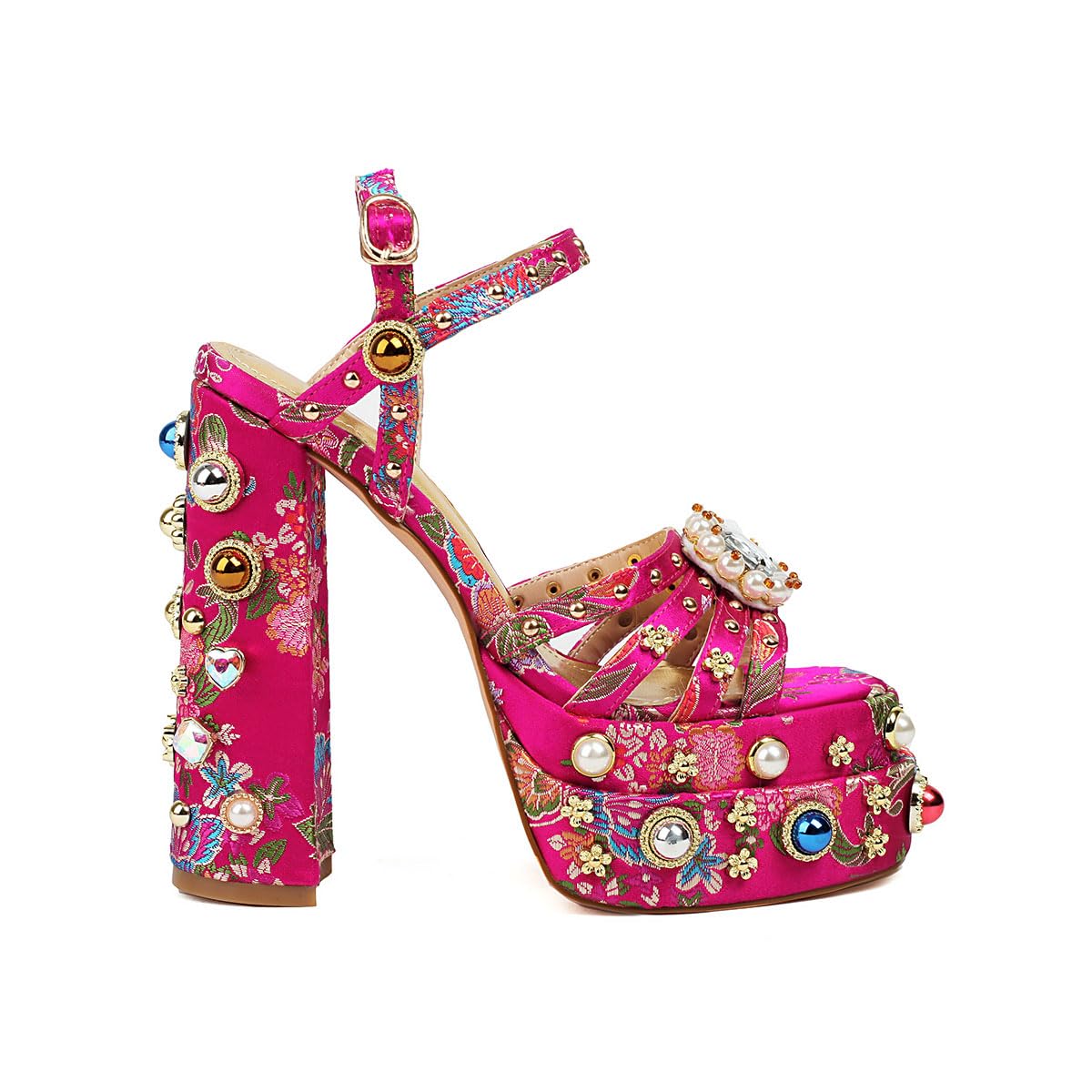 Pink Feinlina Women Rhinestone High Chunky Platform Heel