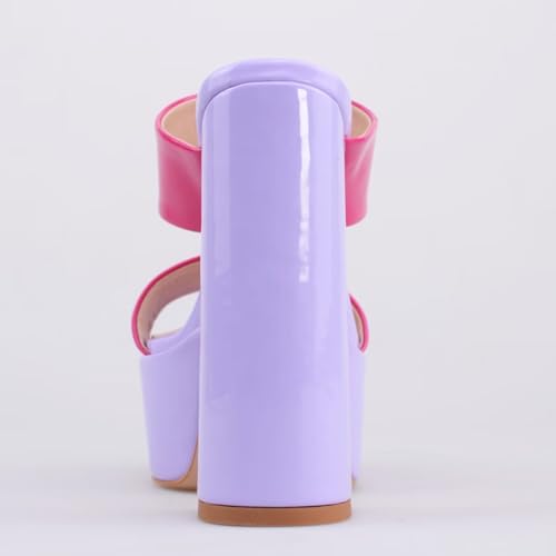 Frankie Hsu Women's Chunky Block Platform Sandals Cheerleader Cute Lovely Hot Pink Purple Orange Green Patent High Heeled Square Toe Fashion Classic Big Size Sandal