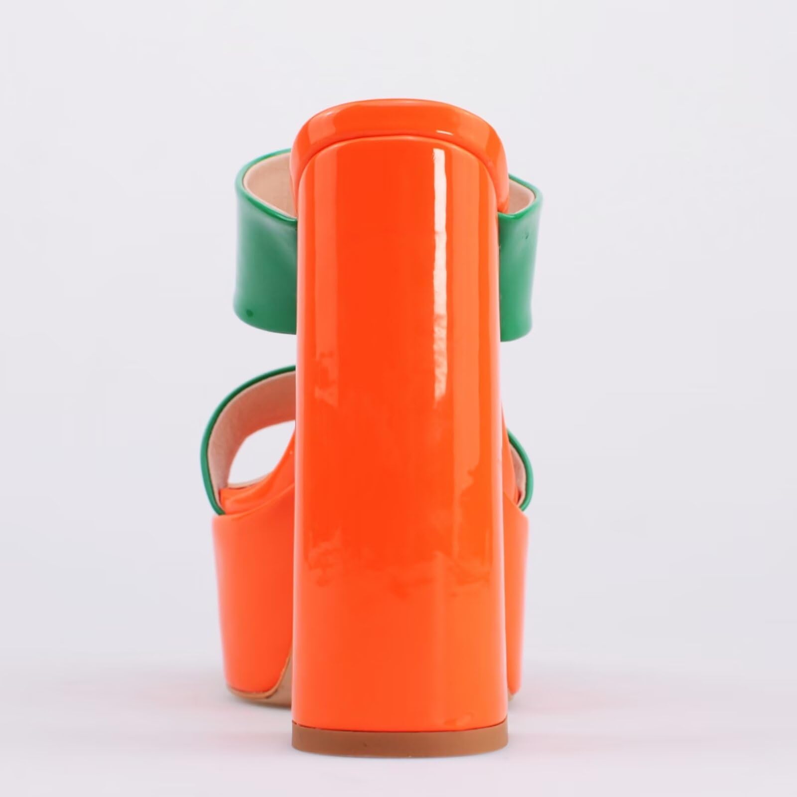 Frankie Hsu Women's Chunky Block Platform Sandals Cheerleader Cute Lovely Hot Pink Purple Orange Green Patent High Heeled Square Toe Fashion Classic Big Size Sandal
