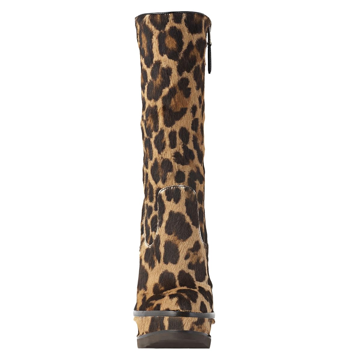 FSJ Women Platform Boots Closed Toe Thin Chunky Heel Side Zipper Double Platform Ankle Boots Punk Combat Mid Calf Boots Size 8 Leopart