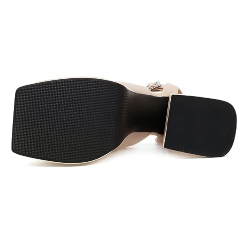 Lizoleor Ladies Fashion Peep Toe Chunky Heel Sandals Ankle Strap Summer Platform Party Shoes High Heels Gothic Dress Beige Size 9 US/41