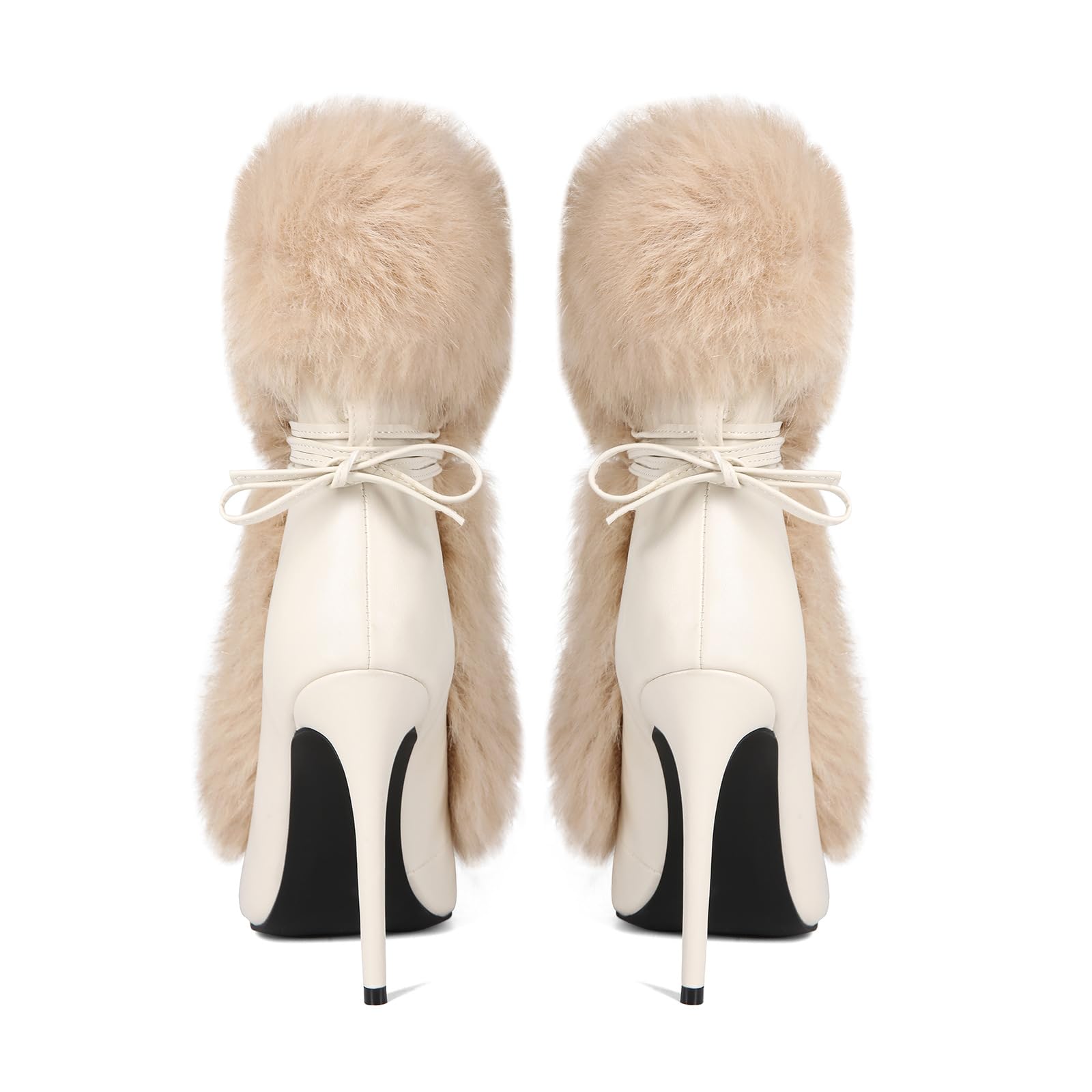 - [UNIQUE DESIGN] Heavy-duty party faux fur pointed stiletto ankle boots. This boots is very perfect for matching your wearing. You can wear this bootie in Party, Prom, Dance, Evening, Club, Date, Business, Snow, Professional, Performance, Formal, Bridal, Wedding, Casual, Travel, or Office etc.