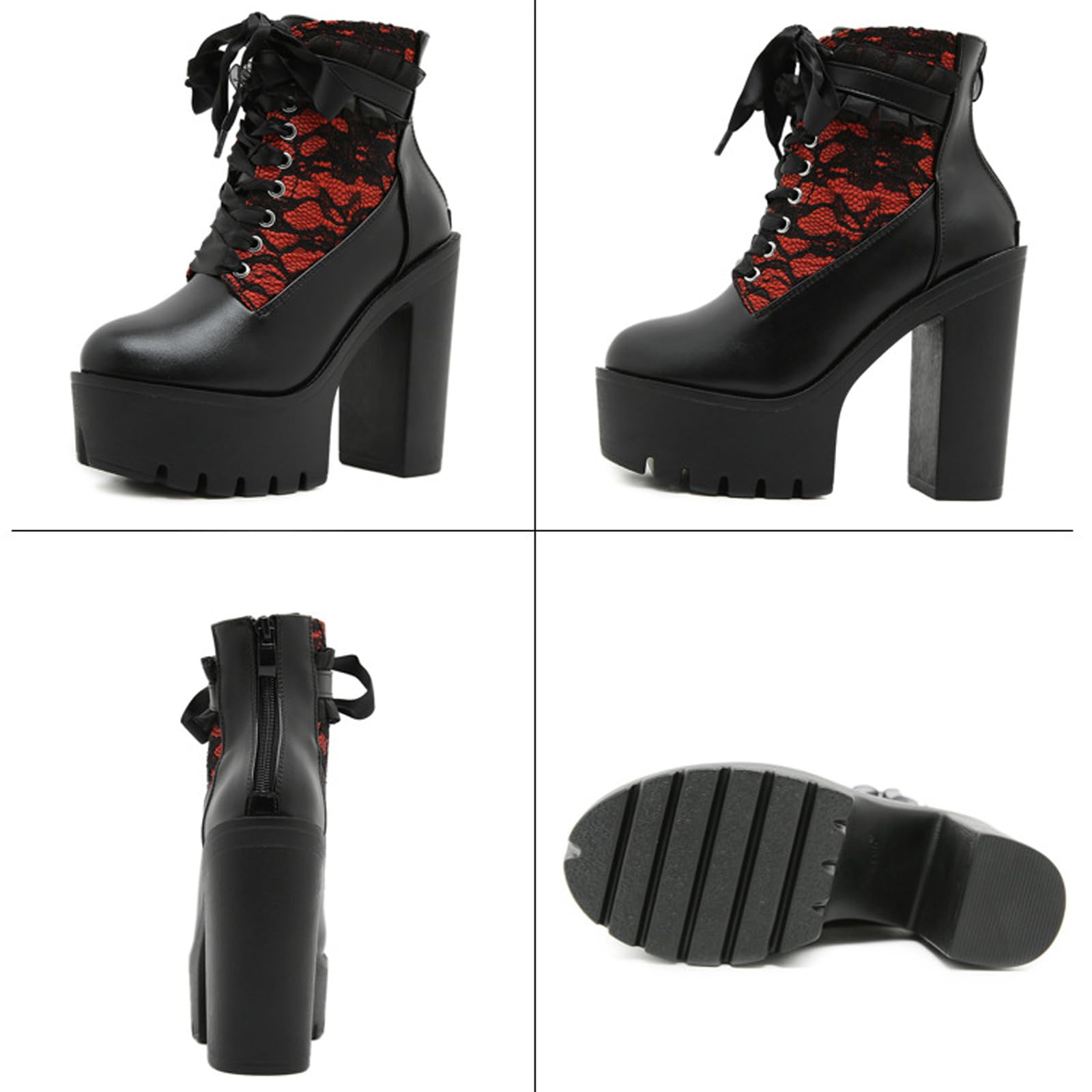 - 【Upper Material】: Women's Gothic platform boots, made of faux leather and lace upper, high-quality synthetic material, soft and delicate touch, elegant, fashionable and comfortable.