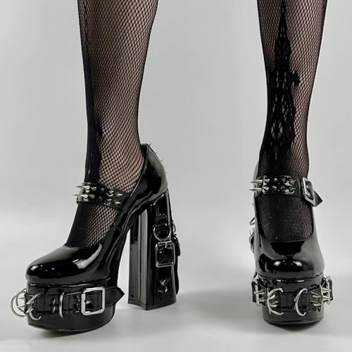 onlymakerheels Mary Jane Rivet Platform Chunky Heel Back Strap Pumps Black Size12