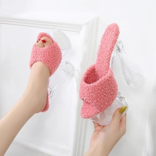 OXCOWNIU High Heeled Transparent Sandals Platform, PVC Sole, Faux Fur Lining Women's High-heeled Sandals