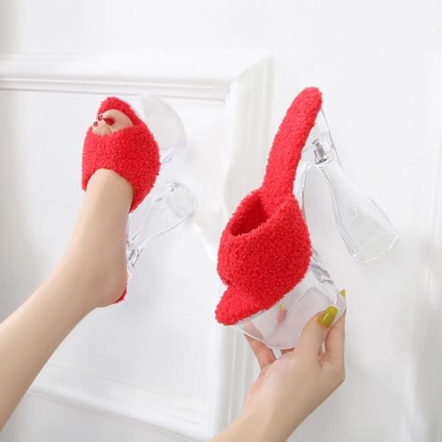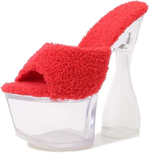 OXCOWNIU High Heeled Transparent Sandals Platform, PVC Sole, Faux Fur Lining Women's High-heeled Sandals