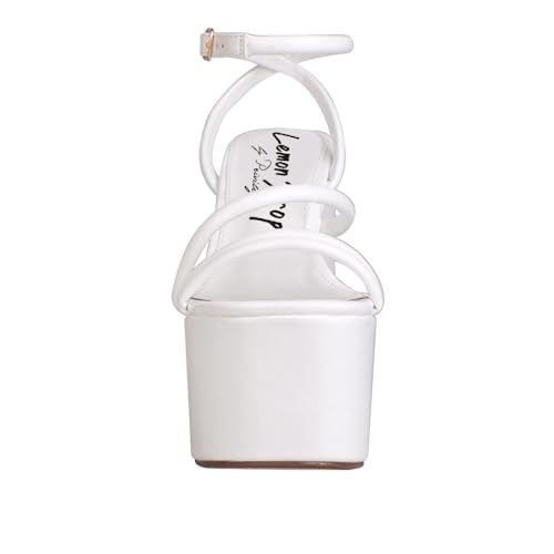Privileged Lemon Drop Jicole Ankle-Strap Platform Heels for Women (White, US Footwear Size System, Adult, Women, Numeric, Medium, 9)