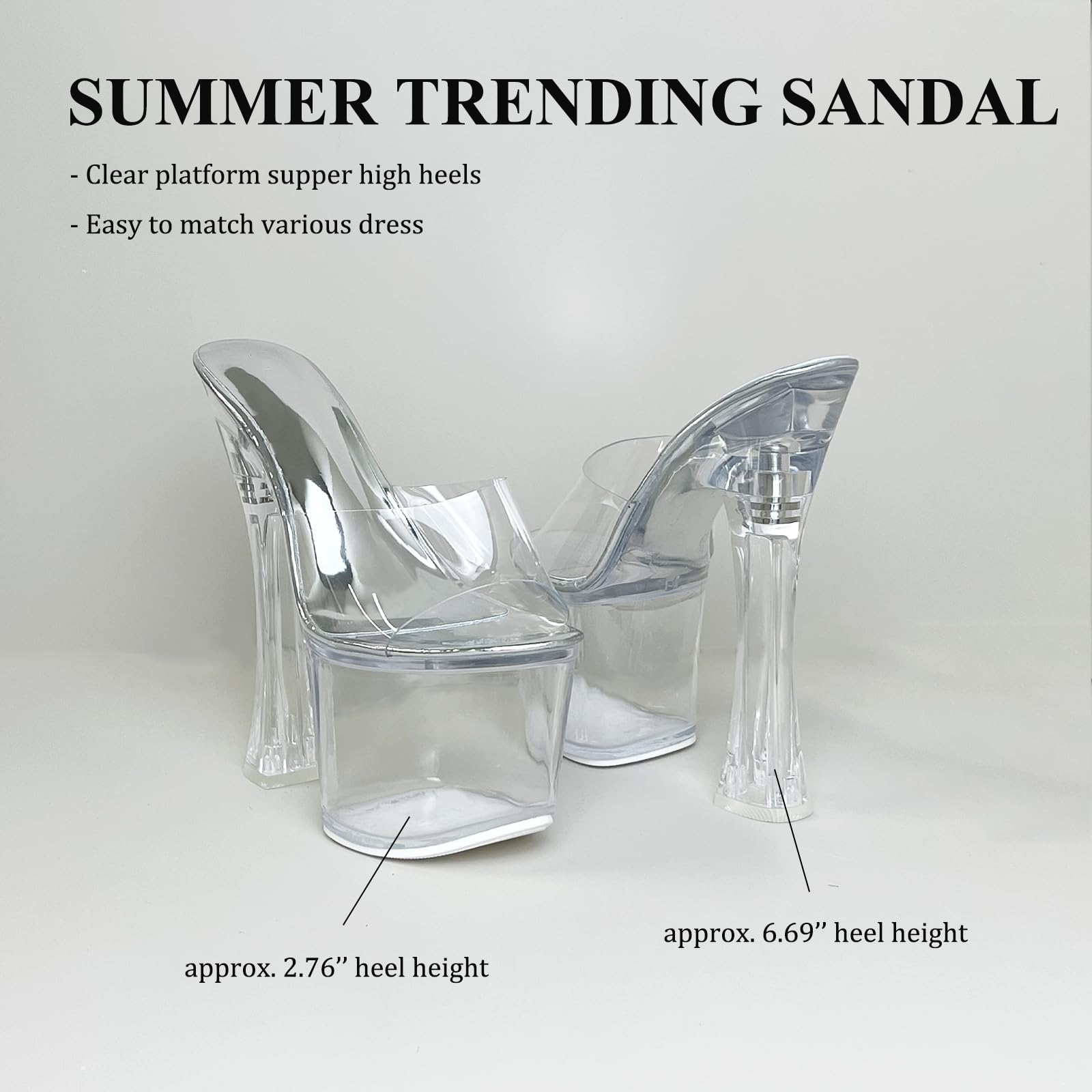- Clear 6.7" clear chunky heels,2.7"platform sandals.