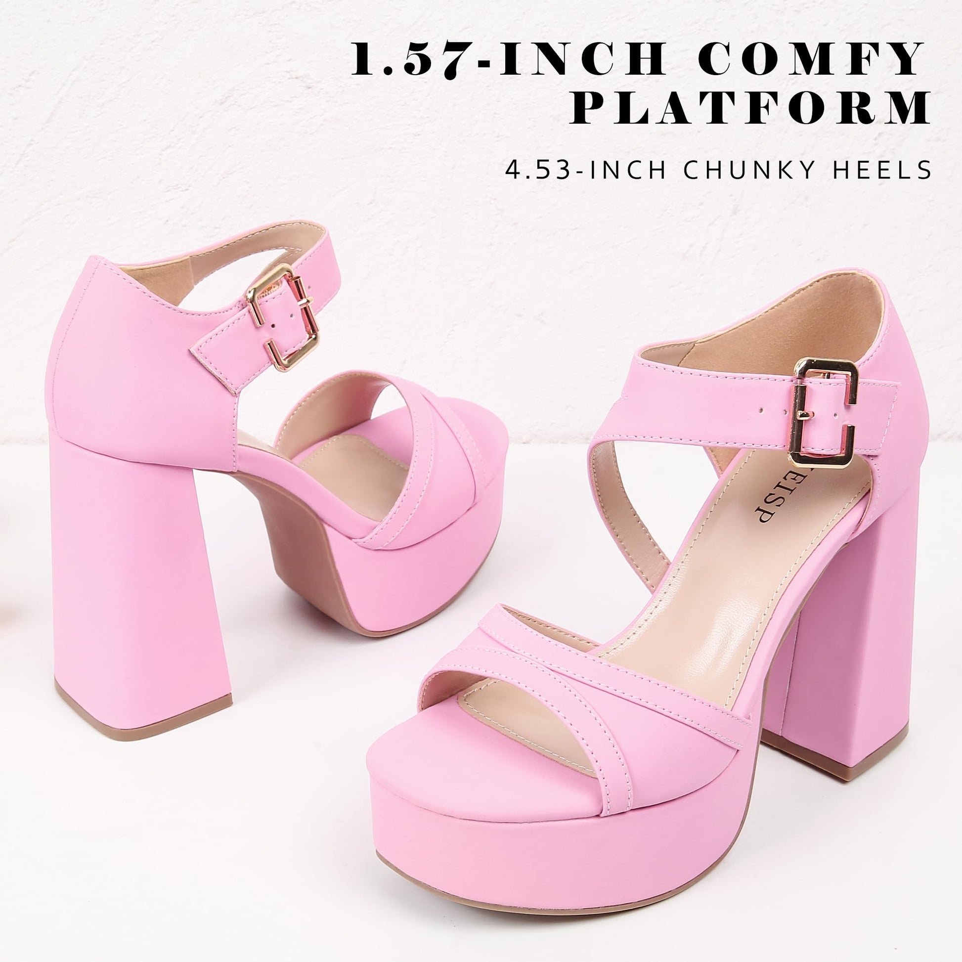 - TIMELESS AND CHIC DESIGN: The classic open-toe and fashion-forward square toe combine for a versatile and stylish look. The perfect platform elongates your legs, adjustable ankle strap with metal buckle adds a touch of sophistication to the platform heels, making them a timeless addition to your wardrobe.