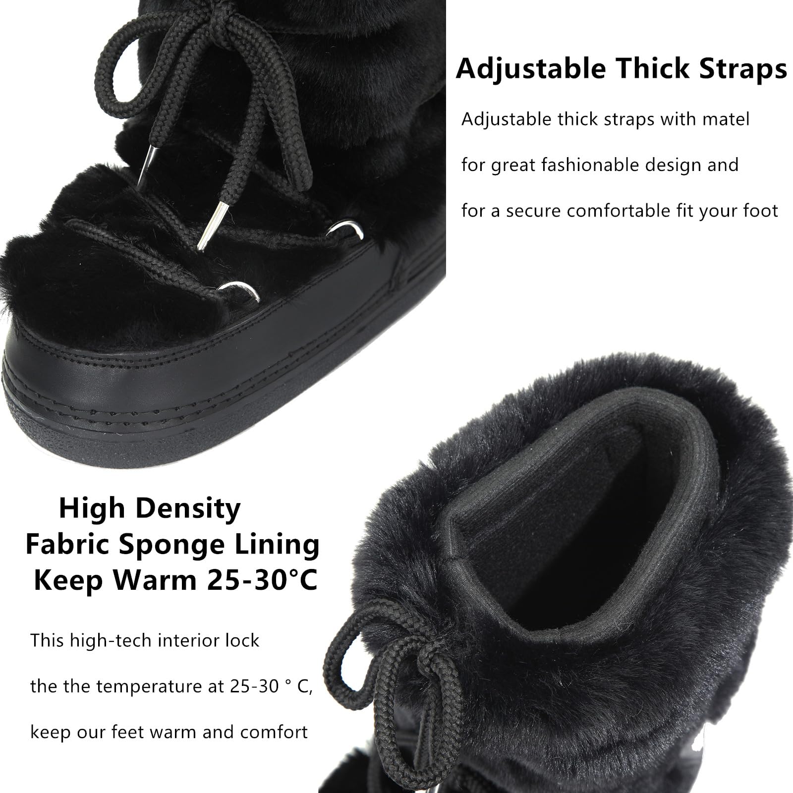 - Water-Resistant Upper:Experience the luxury and fuzzy fluffy furry of our faux fur winter boots for women. Not only do the snow boots provide a fashionable look with their cross tie lace-up design, but they also ensure practicality with their water-resistant PU leather to keep your feet dry and warm. These women fur boots perfect for the snowy season.